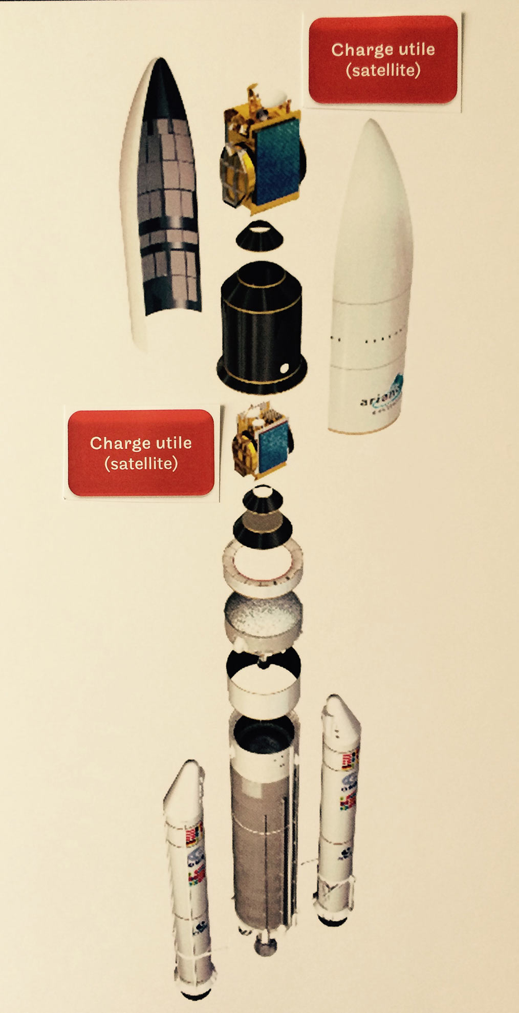 Ariane est le nom des lanceurs de satellites européens ; ceux que l’on appelle aussi parfois « fusées ». Ces lanceurs sont le moyen de transport des satellites vers leur orbite finale d’où ils pourront remplir leurs missions (télécommunications, géo-positionnement, etc.). Ariane 5, en service depuis presque 20 ans, se verra bientôt remplacée par la nouvelle Ariane 6 (à l’horizon 2020).